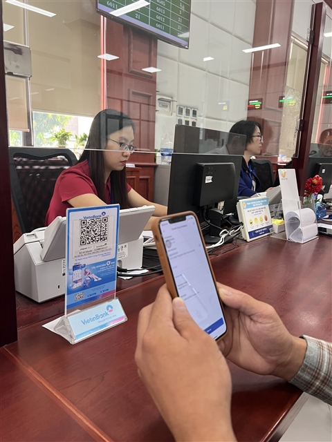 Người dân thanh toán phí, lệ phí bằng hình thức quét mã QR-Code tại Trung tâm Phục vụ hành chính công tỉnh