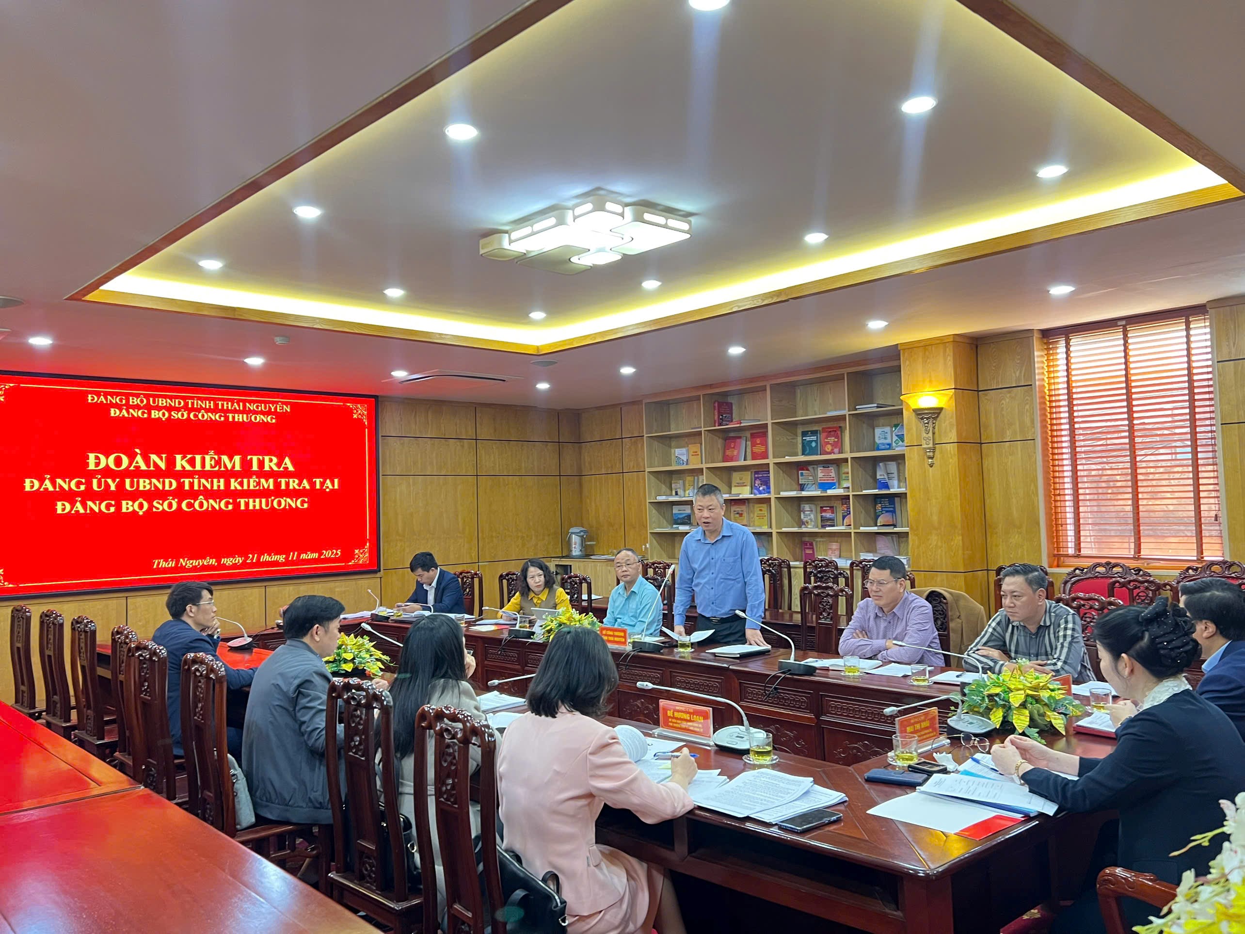Sáng ngày 21/11/2025, Đoàn kiểm tra của Đảng ủy UBND tỉnh Thái Nguyên đã làm việc với Đảng bộ Sở Công Thương về việc lãnh đạo, chỉ đạo xây dựng và tổ chức thực hiện Quy chế làm việc của cấp ủy và Ủy ban Kiểm tra Đảng ủy, Chương trình kiểm tra giám sát toàn khóa; công tác ban hành văn bản sau Đại hội; việc lập và lưu trữ hồ sơ Đại hội Đảng nhiệm kỳ 2025 - 2030 theo Quyết định số 335-QĐ/ĐU ngày 16/10/2025.