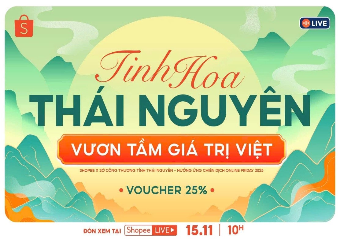 Các đơn vị, HTX Thái Nguyên tham gia phiên livestream “Tinh hoa Việt chung sức” ngày 15/11/2025 trên sàn TMĐT Shopee